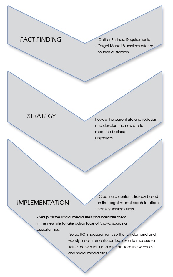 Customer Engagement Fig 1 : ICTIP’s Customer Engagement Model   The Process At ICTIP, we follow an extremely carefully formulated process that helps us best leverage our core competencies with the requirements of the client to help achieve return on investment (ROI).  The figure below details the process that we followed with One Hour Plumbing from inception to delivery. The Process Once the process was finalised, the next step was to decide on the management process that would help both ICTIP and One hour Plumbing to monitor the Return on Investment (ROI). After almost 2  ½ years of managing social media campaigns for small to large organisations, at ICTIP we have a tried and tested management process which has proven to be an enormous success. Monitoring Fig 2 : Management and Measurement of Traffic and ROI The Outcome After the development process, the website was completely revamped to a modern and social theme which enables the customer to find quick information and can find all the service offerings in one glance. A prominent call to action has also been included which will enable the customers to quickly call for the plumbing services of their choice or request for a quote.  The social media sites have also been integrated into the website allowing customers to connect with One Hour Plumbing via their preferred Social Media Network. Website The target market that One Hour Plumbing services have been given an upgrade to give a user-friendly and easy to use look. Additionally, the social media sites have also been branding with an overall consistency that reflects the corporate image of One Hour Plumbing. Social Media Sites As it is clearly visible, the website and social media sites all have a theme and branding which reflects the overall vision of the company. As per the customer engagement model detailed above, traffic for one hour plumbing has moved from a search centric organic model to a referral centric social media model. Conclusion In the weeks to come, ICT Internet Presence will start managing the day-to-day social media campaigns of One Hour Plumbing. As part of our social media management strategy, we will ensure timely and trending posts which are consistent and connect emotionally with the audience.  Furthermore, our routine analytics will ensure that ROI’s are met by way of: –